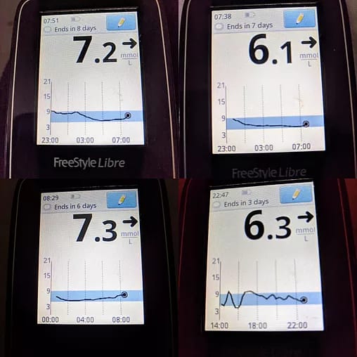 All of my previous complaints are healed and my insulin sensitivity ( the rate at which my body uses the insulin I inject ) has rocketed. I need only small doses of insulin for relatively large amounts of carbs ( from fruit and veg ). I am happy, I look and feel better than I did 10 or even 15 years ago. My recent HbA1cs are under 7.