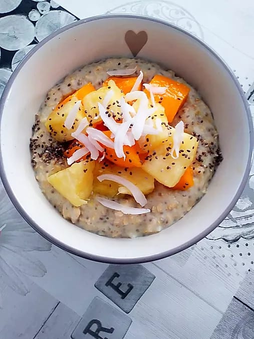 This recipe is super flavourful with the background ginger flavour within the oats, to the bursting sweetness of the mango. With the added crunch of coconut this probably has to be one of my favourite oat recipes.